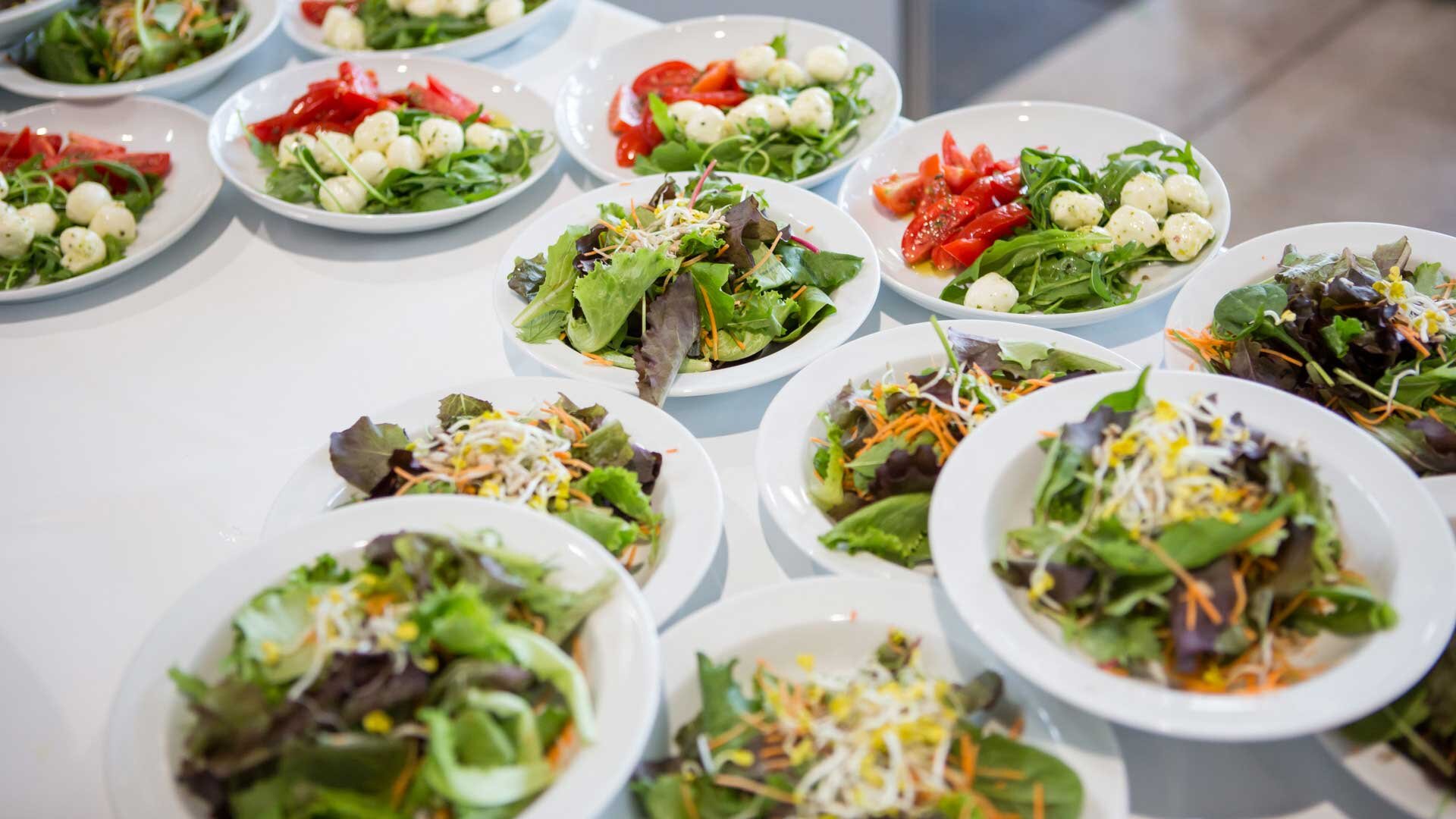 Neben unseren Messeständen achten wir auch bei unserem Catering auf Nachhaltigkeit. Es wird vegetarische sowie vegane Optionen geben. Zudem liegt der Fokus auf regionalen und saisonalen Lebensmitteln. Wir haben uns des Weiteren für Porzellan- und nicht für Einweggeschirr entschieden, um Müll zu vermeiden. Getränke werden aus Flaschen angeboten und wir setzen auf einen regionalen Wasseranbieter, um auch hier den CO2-Fußabdruck gering zu halten.